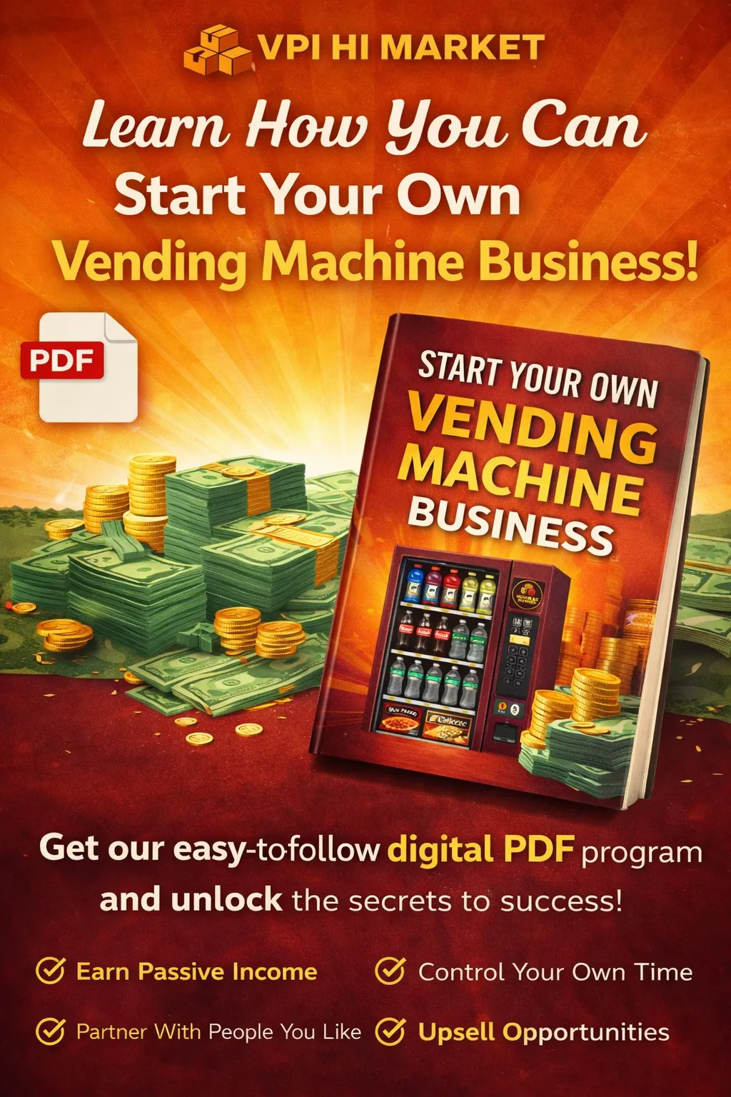 VPI – No financial contribution required. Earn up to 5% of monthly sales when the machine reaches $2,500+ in gross revenue.
